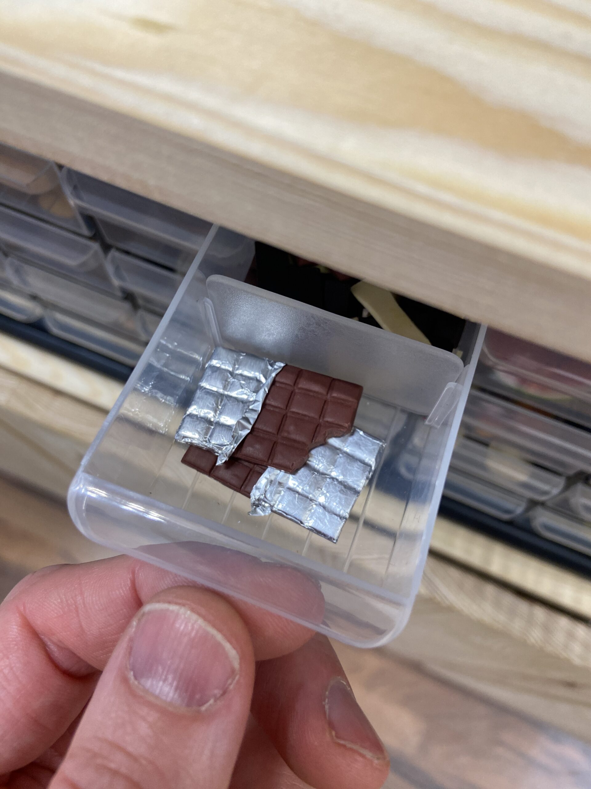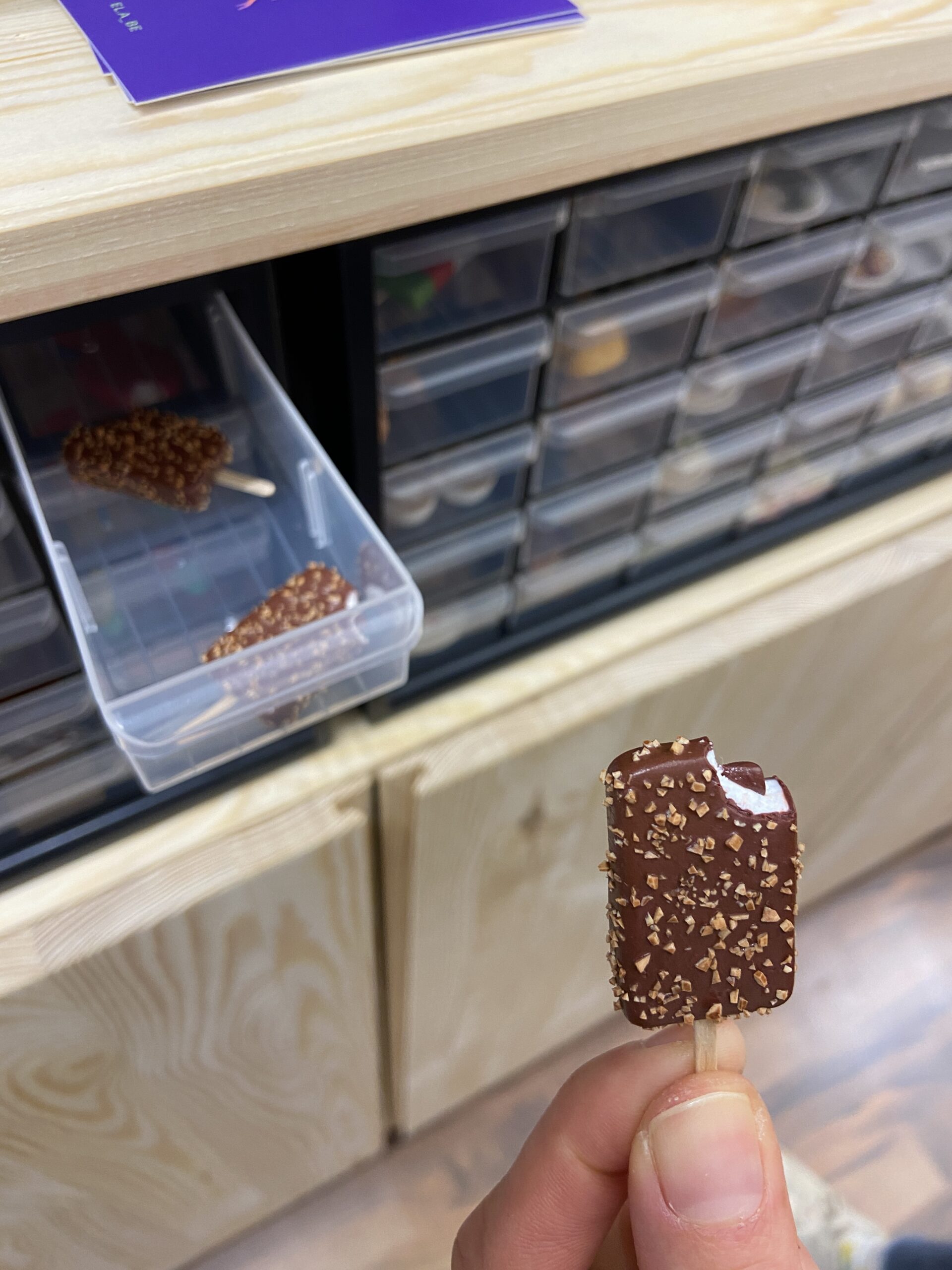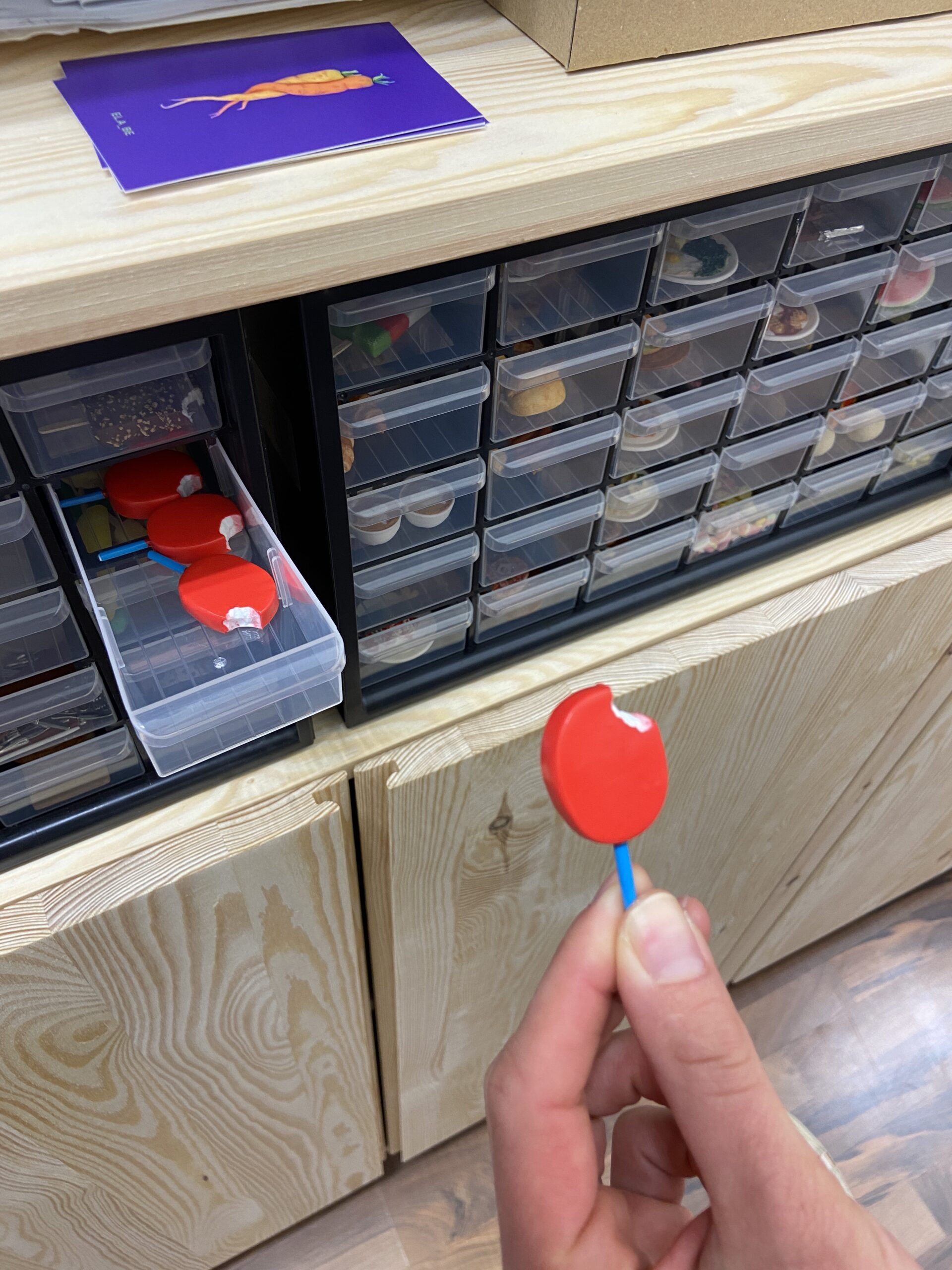 Die frühere Ergo-Therapeutin, die sich jetzt seit etwa zwei Jahren neu orientiert und fulltimemäßig selbstständig gemacht hat, backt am Ende jedes ihrer per Handarbeit erstellte „Mini-Objekt“ bei 110 Grad für genau 30 Minuten, dann sind die Bananen, Bratwürste, Nogger, Bum-Bums, Fischbrötchen, Zitronen, Melonen, Schokoladen & Co ready für die Manufaktur-Fertigstellung.