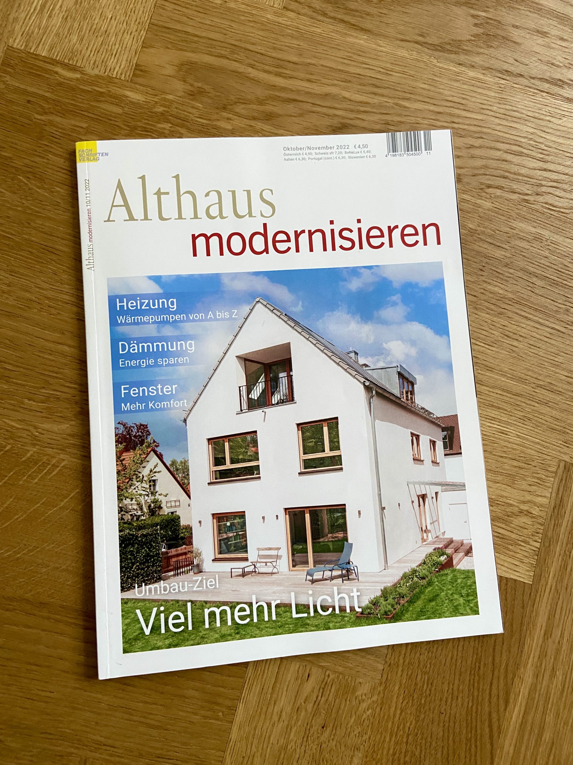 Wow, das ist eine ganz besondere Ehre – und Erfahrung jetzt. Unsere Hausrenovierung – mit der Stadtvilla aus dem Jahre 1936 – ist in der Zeitschrift „Althaus modernisieren“ dokumentiert worden. Das Ergebnis: eine wirklich tolle Reportage mit wunderbaren Fotos.